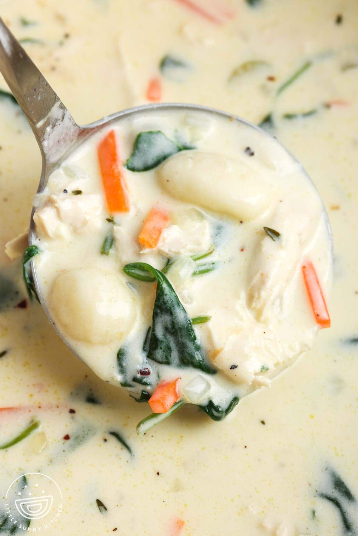 If you’ve tried before and had mushy gnocchi or dried-out chicken, this recipe will show you how cooking the ingredients over gentle heat keeps the soup creamy, the chicken tender, and the potato gnocchi plump and perfect.