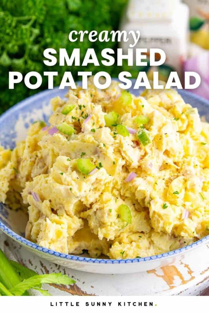 Smashed potato salads have really been having a moment lately, just like my crispy smashed potato salad with tzatziki dressing. But this version is a little different. It is creamy, classic, and all about that soft texture instead of crispy edges.