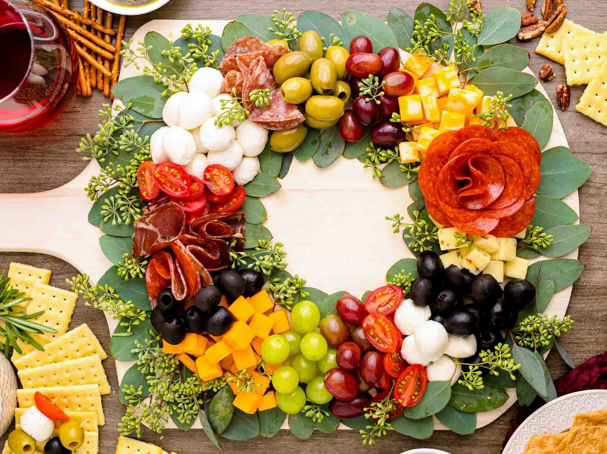 Cheese, meats, fruit, and snacks arranged into a wreath shape that instantly dresses up your appetizer table. Simple ingredients with big visual impact.